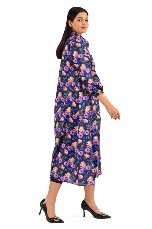 New ArrivalNavy & Lavender Abstract Print Cotton Maxi Dress